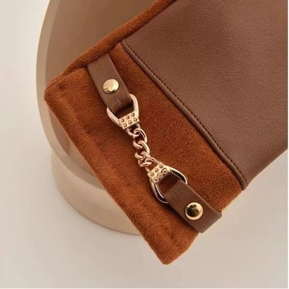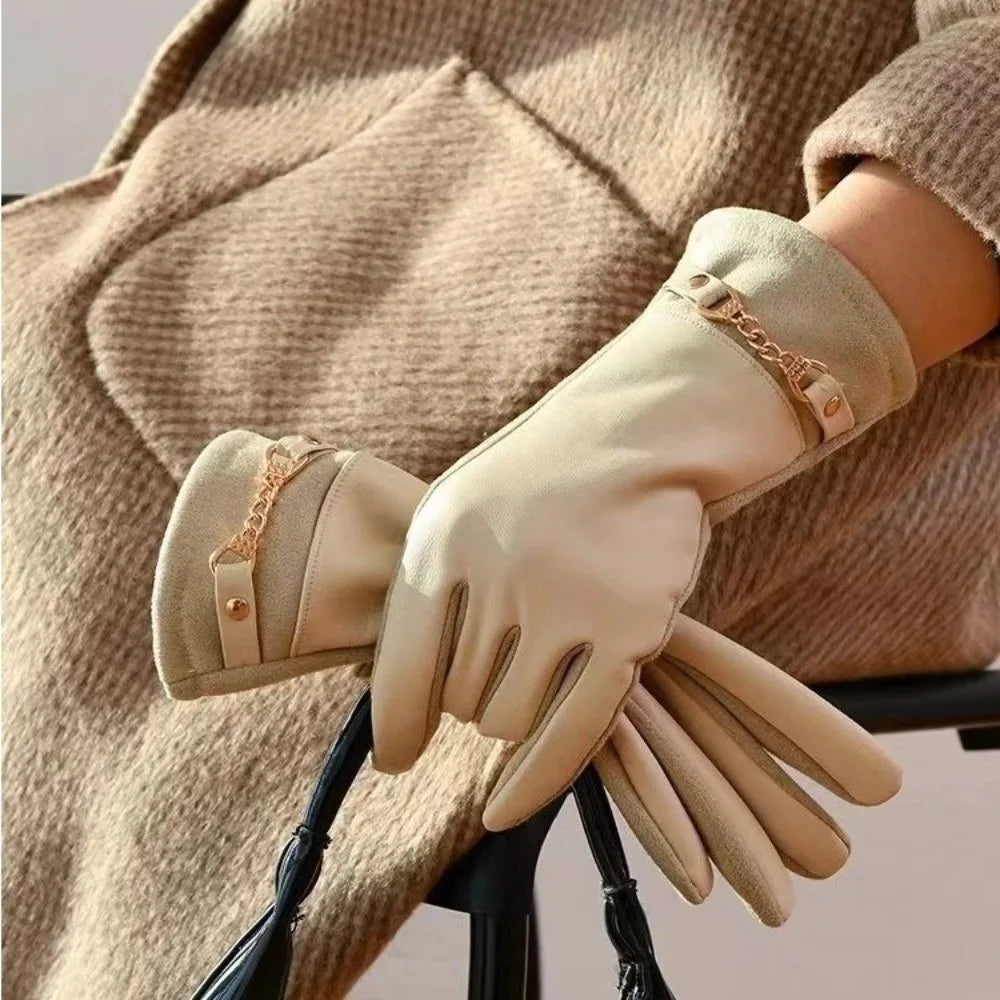 Soft, cozy, and warm. Finished with a refined chain detail and a plush velvet lining, these elegant gloves keep your hands snug while elevating your winter style. A refined seasonal essential you’ll reach for again and again.